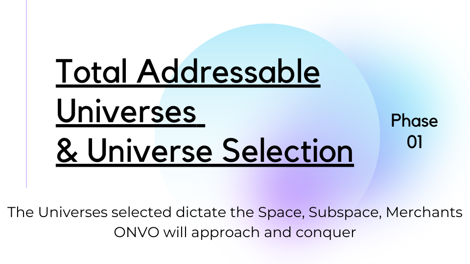 We will analyze our TOTAL ADDRESSABLE UNIVERSES before selecting and prioritizing the order in which we will reach out and penetrate Phase 1 & 2 target Spaces / Subspaces / Merchants